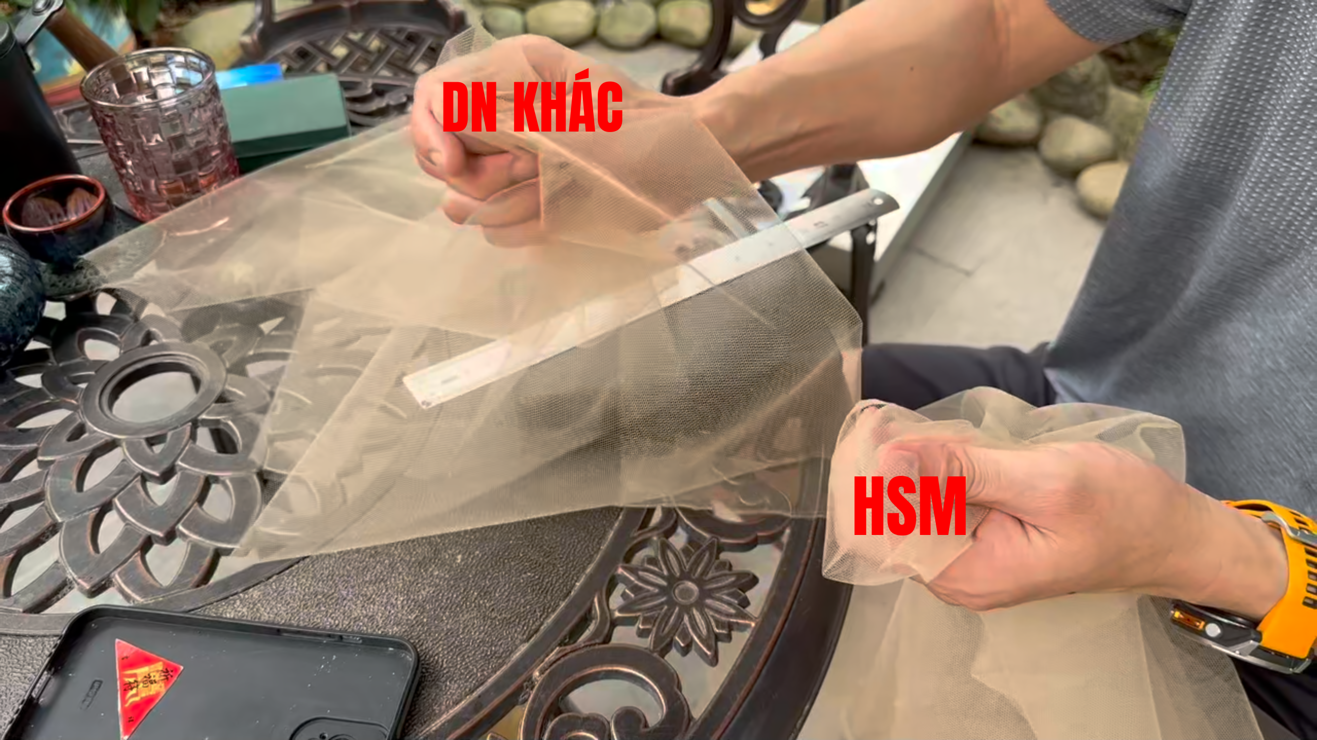 Kiểm tra chéo mật độ mắt lưới bằng thước đo theo chiều ngang để đảm bảo đúng thông số cam kết.